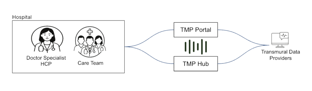 Hospitals use the TMP Portal to request a compliant Transmural Data Provider and securely share the required context.